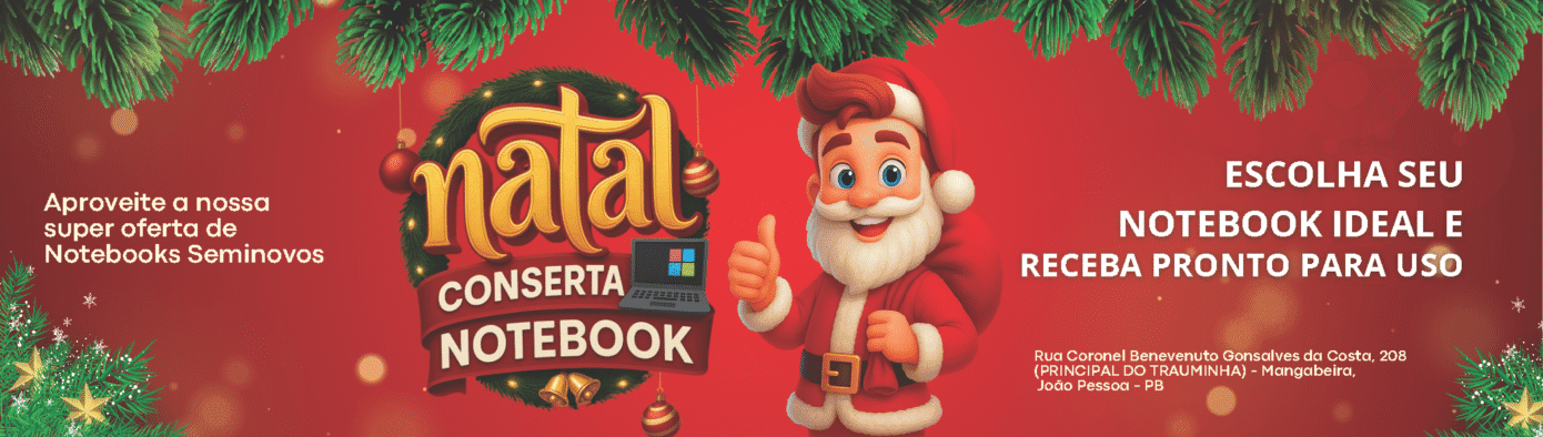 Venda de notebooks usados e seminovos revisados, com garantia. Equipamentos prontos para trabalho, estudo e uso profissional. Aqui você encontra notebooks das principais marcas, testados por técnicos, com procedência, suporte e atendimento local em João Pessoa – PB.